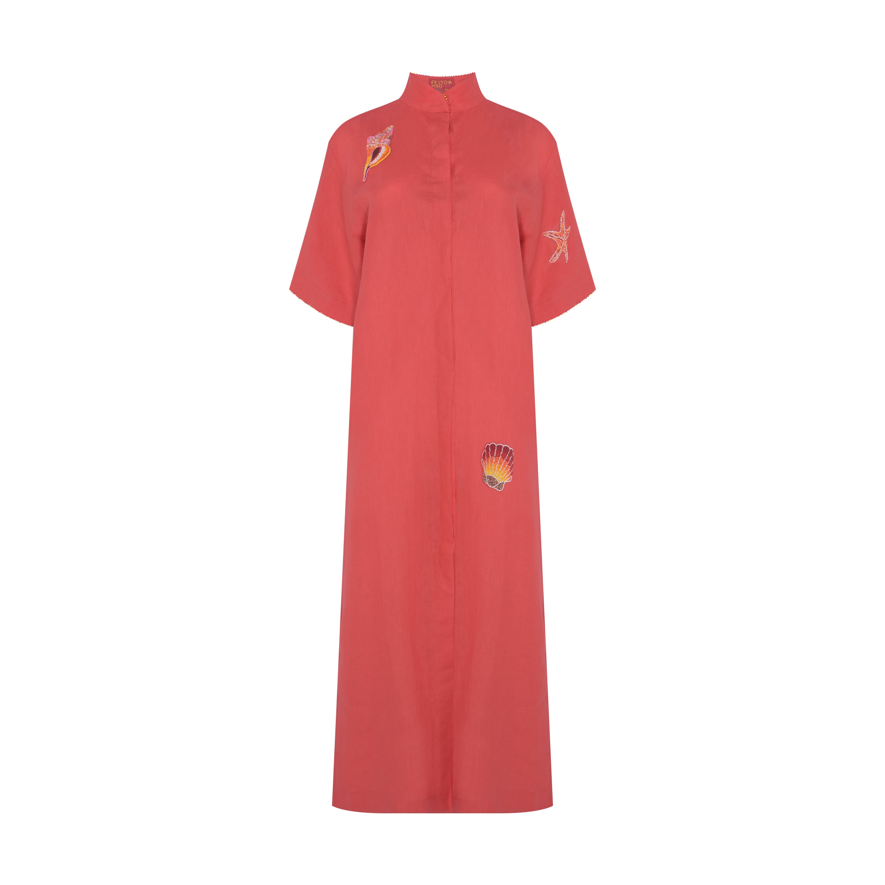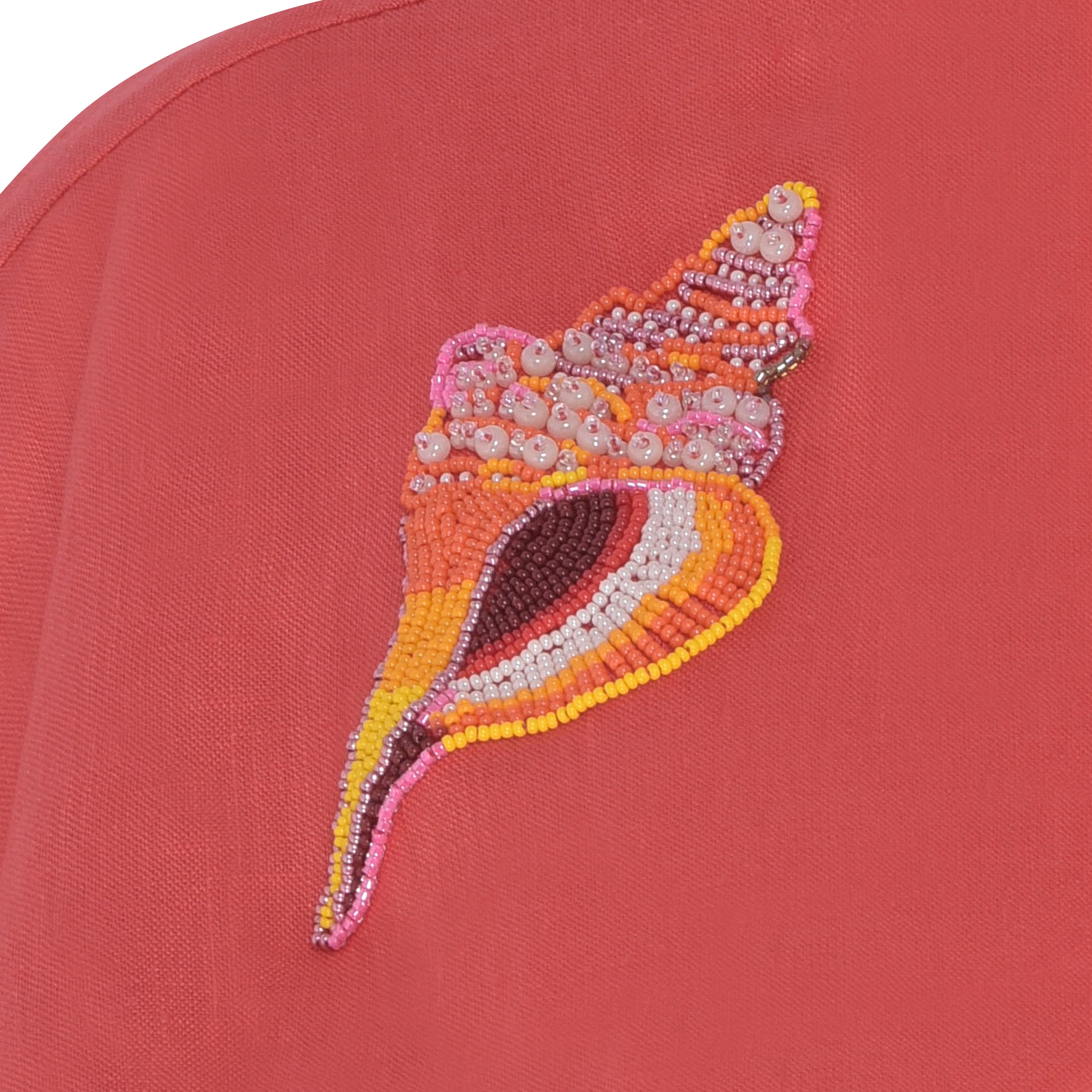 Coral com bordado de conchas em miçanga e linha de algodão.
