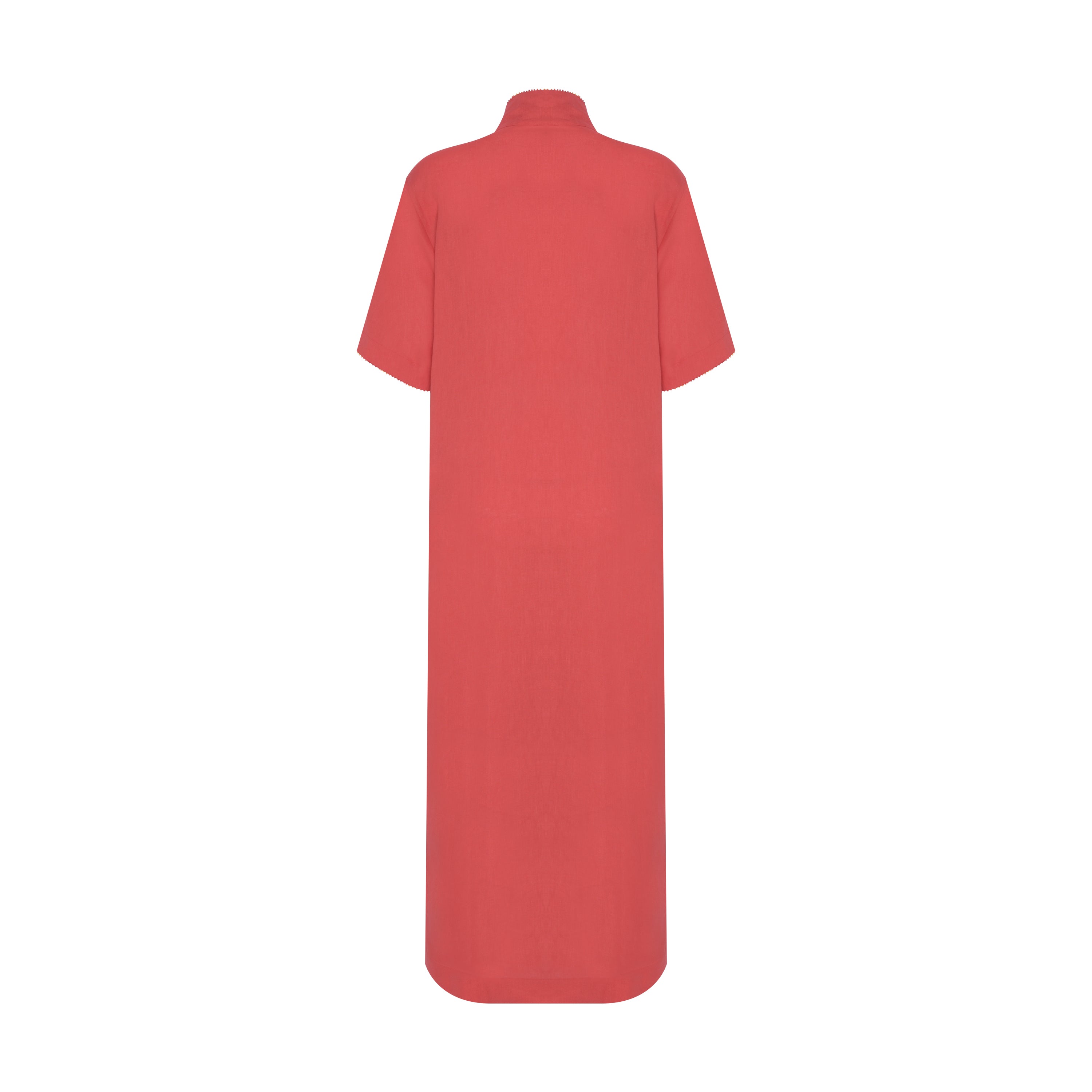 O Vestido 'Yas' Conchas é um vestido chemise amplo e elegante, feito em puro linho, garantindo conforto. A peça possui gola oriental, pátio invisível e bolsos laterais, praticidade e um toque de sofisticação. O destaque fica por conta das conchas bordadas manualmente em miçanga e linha de algodão, adicionando um elemento artesanal e único ao design.