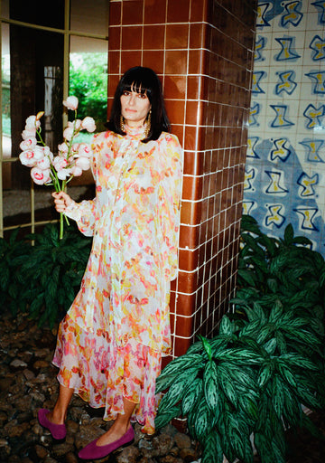 A Saia ‘Chiffon’ Íris Violeta é uma peça elegante e fluída, feita em chiffon de seda 100% para um caimento leve e sofisticado. Com design amplo e cintura alta, a saia possui elástico no cós, proporcionando um ajuste confortável e versátil ao corpo. Sua estampa floral exclusiva, predominante em roxo, e com um toque em tons multicoloridos adiciona um toque artístico e moderno, tornando-a ideal para diversas ocasiões.