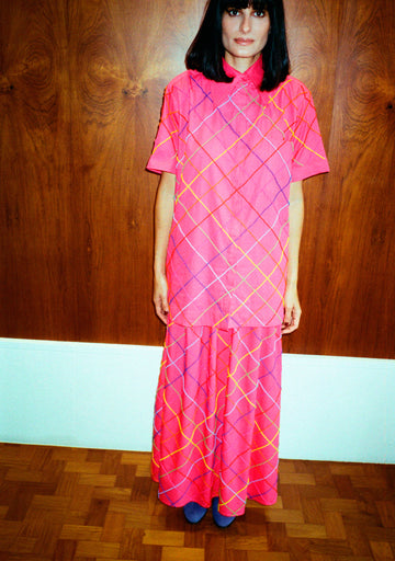 A Saia 'Vera' Listras é uma peça longa e ampla com design de cintura alta, ideal para criar looks elegantes e confortáveis. Feita em tricoline de algodão essa saia oferece um toque suave.